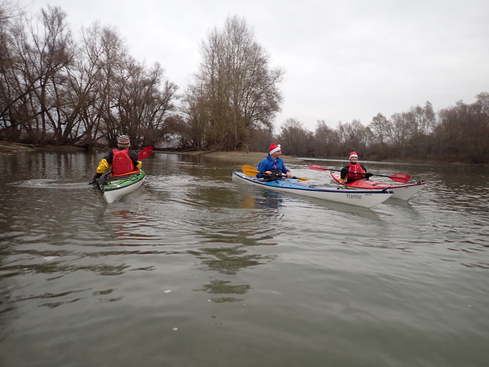 Nicht oft fällt der Nikolaustag auf einen Samstag und bietet sich so für eine Aktivität an. Bei trübfeuchtem Spätherbstwetter trafen sich immerhin vier Paddelnde zu einer gemeinsamen Ausfahrt. Für den folgenden Umtrunk wurden schon vormittags die Vorbereitungen getroffen. Hinter dem Bootshaus trafen sich dann auch Nichtpaddler des Clubs zu Glühwein und Bratwurst.